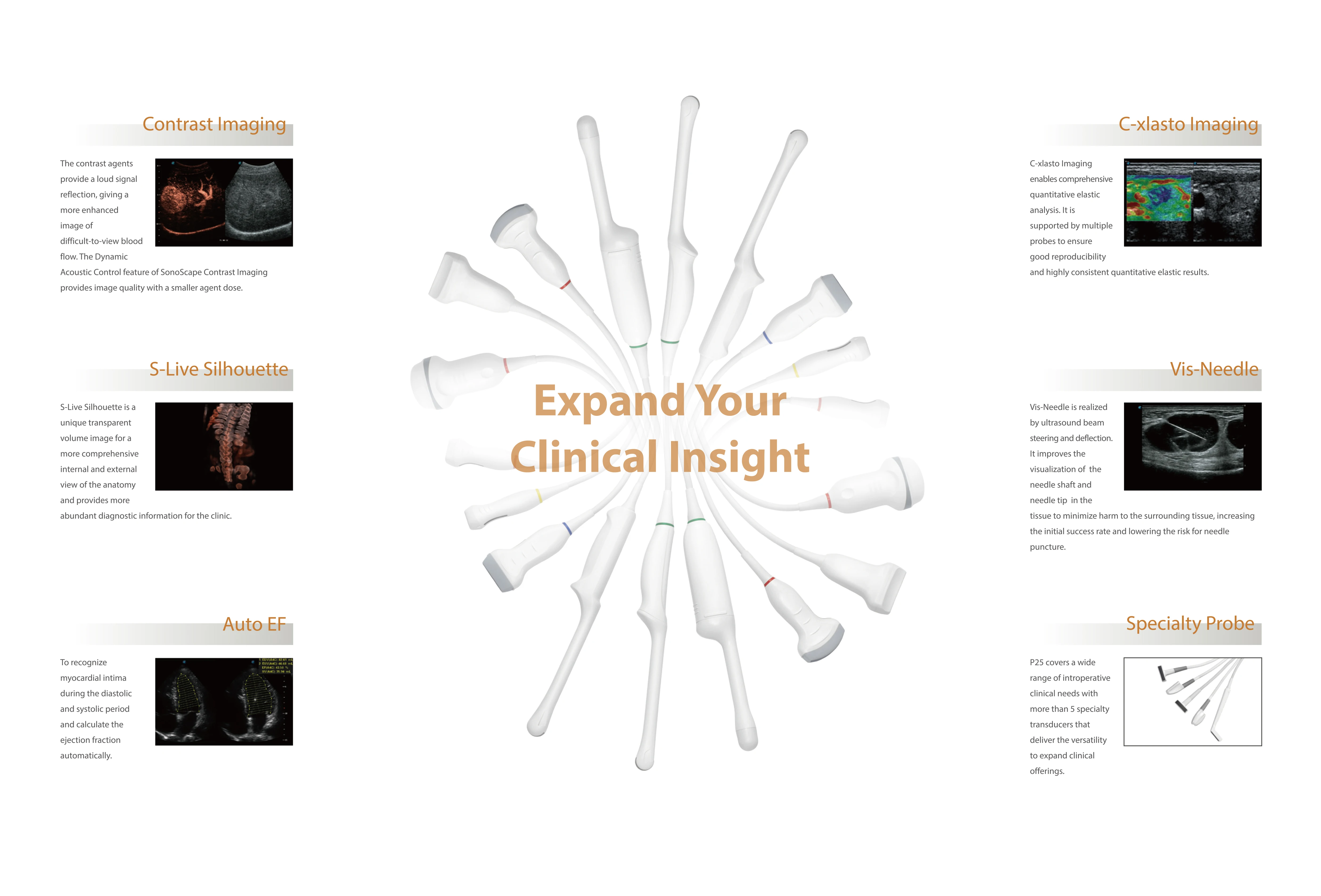 | វេទិកាវេនធំទូលាយ | ប្រព័ន្ធបញ្ជូនប្រព័ន្ធកម្រិតបញ្ជូនយ៉ាងទូលំទូលាយបំផុតនិង probeTechnology ខ្ពស់អនុញ្ញាតឱ្យប្រមូលព័ត៌មានកាន់តែប្រសើរ។ ដំណោះស្រាយខ្ពស់ខ្ពស់ខ្ពស់ជាងនេះ នៅស៊ីជម្រៅជាមួយនឹងលក្ខណៈសមភាពប្រសើរសម្រាប់ធ្វើរោគវិនិច្ឆ័យត្រឹមត្រូវ។ |