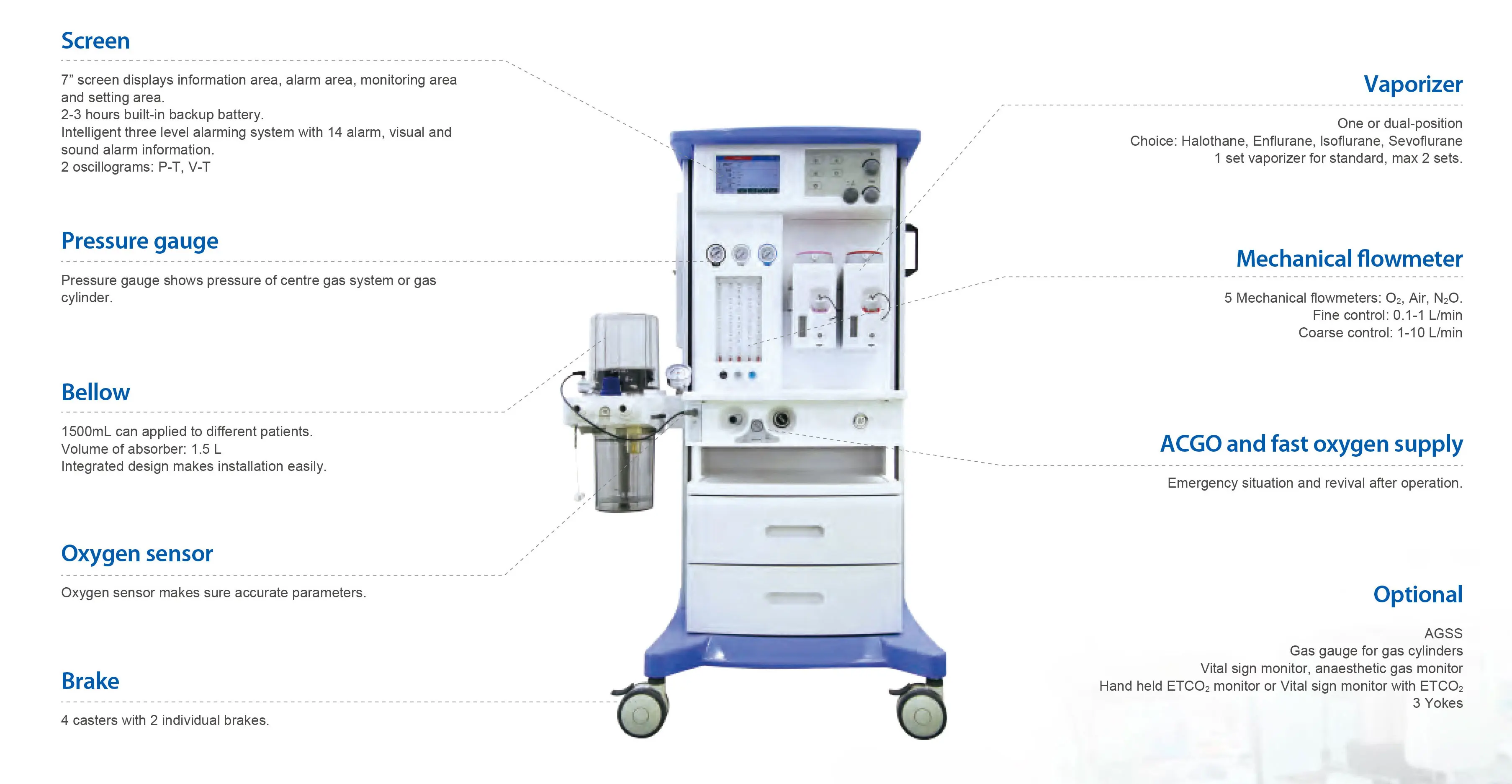 | ចិមុចំ | O2 (0.1 ~ 10 លីត្រ / នាទី) |
